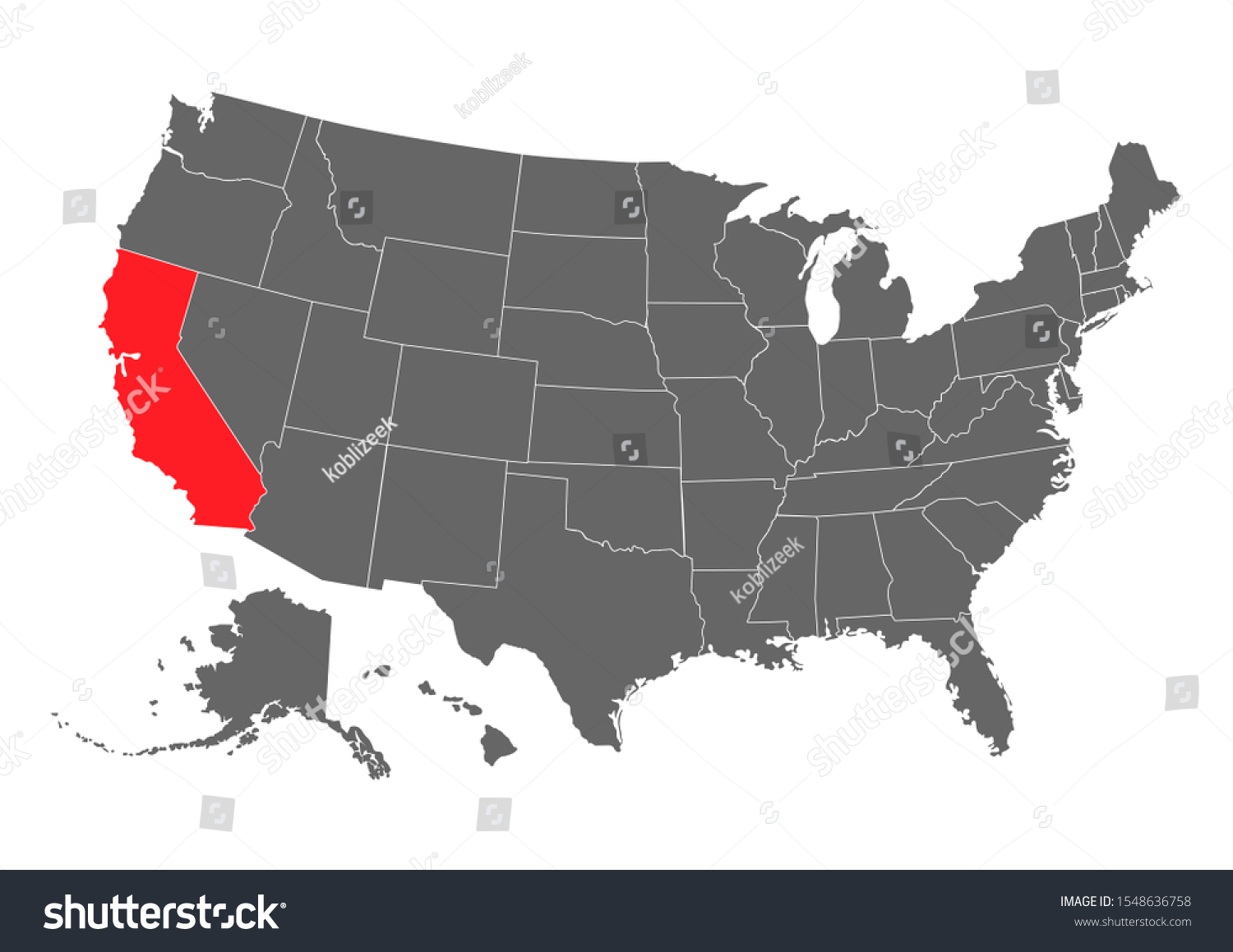 カリフォルニアのベクター画像地図のシルエット。詳細なイラスト。アメリカ合衆国」のベクター画像素材 ロイヤリティフリー1548636758Shutterstock。