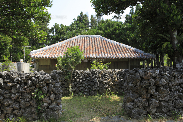 竹富島の石垣と赤瓦屋根の民家 26105011741 の写真・イラスト素材アマナイメージズ。
