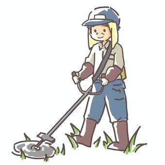 電動草刈り機で草を刈る女性のフリーイラストフリーイラスト・クラシック フリクラ。