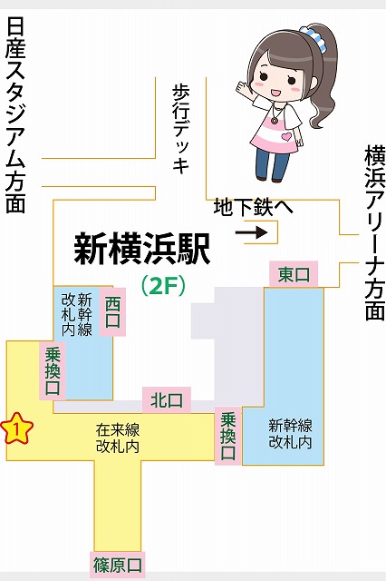 新横浜駅ガイド:わかりやすい構内図、待ち合わせ場所3ヶ所マップ付き関西の駅ガイド。