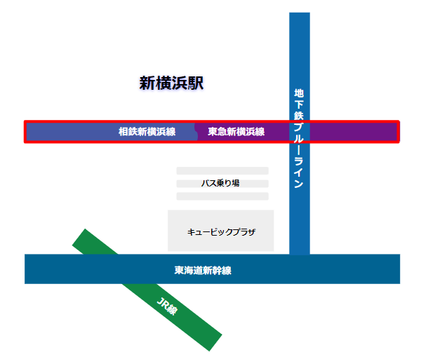 新横浜駅乗り換えマップ 新幹線・相鉄 東急新横浜線・横浜線・ブルーライン。