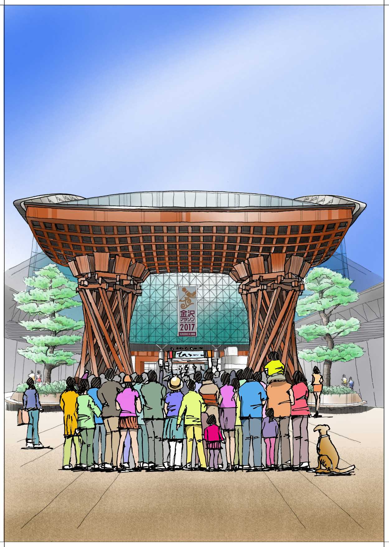金沢駅鼓門、添景描き換え - 身近な風景スケッチ。