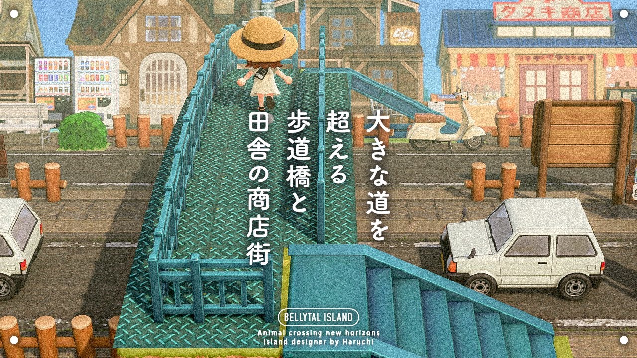 あつ森 大きな道🚗を超える歩道橋と田舎町の商店街づくり 島クリエイト。