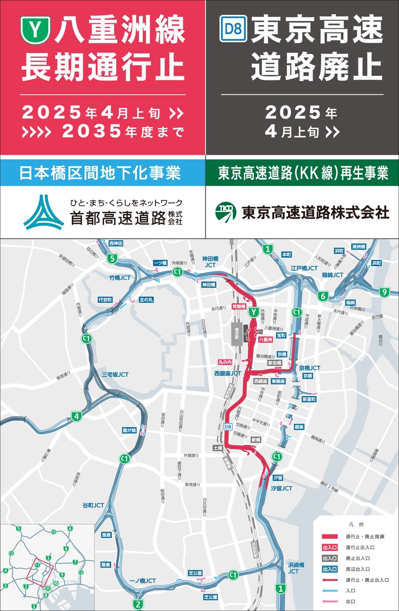 高速八重洲線の長期通行止め 東京高速道路 KK線 の廃止:首都高速道路日本橋区間地下化事業。