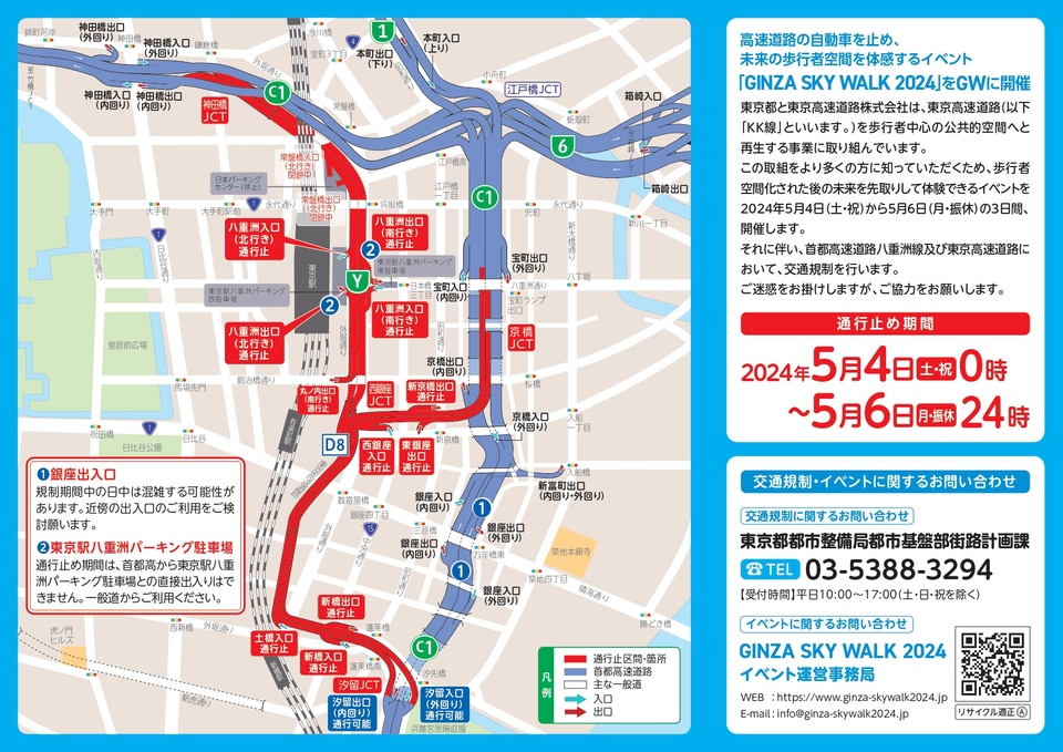 東京高速道路 KK線 と首都高八重洲線、5月4日0時~6日24時に通行止め 「GINZA SKY。