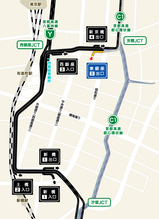 東京高速道路 会社線 出入口 銀座・有楽町ハイヤー!ハイヤー!ライフ。