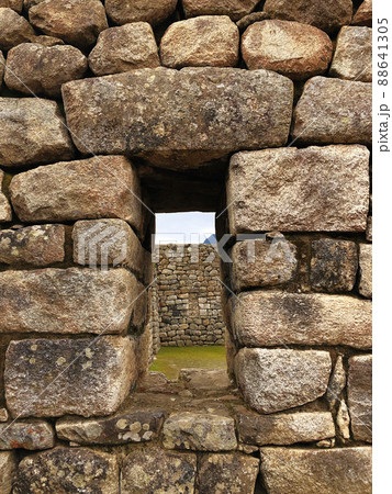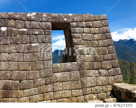 ペルー マチュピチュ遺跡:石積み越しに見る美しい山の景色の写真素材87627355- PIXTA。