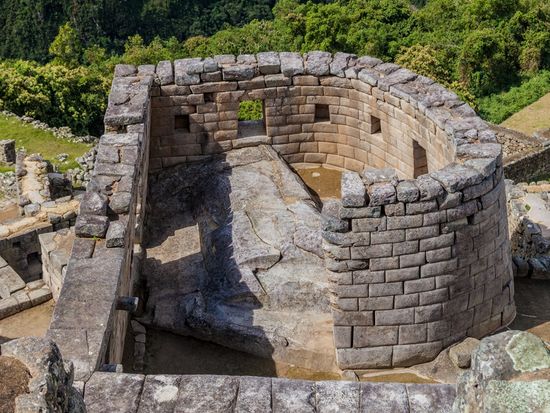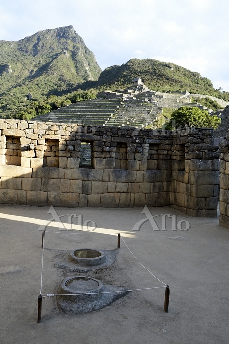 ペルー マチュピチュ遺跡 天体観測の石と段々畑と見張り小屋26043303。