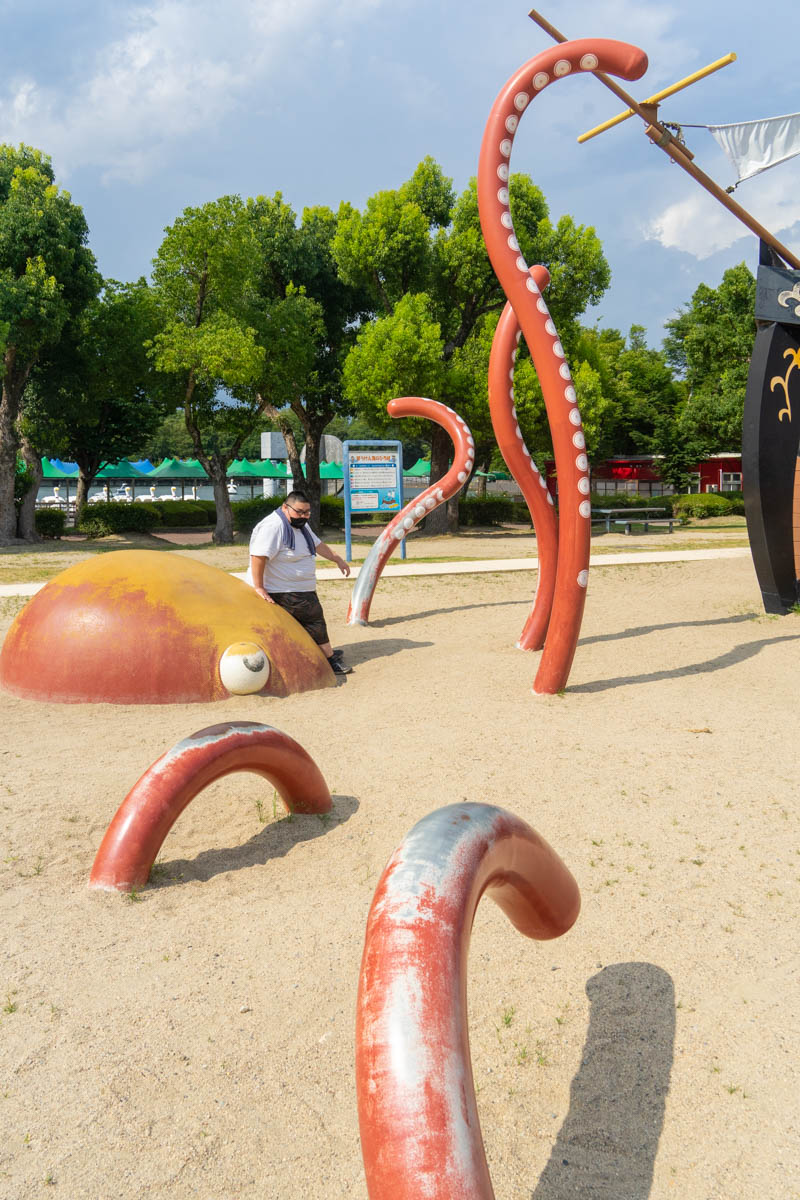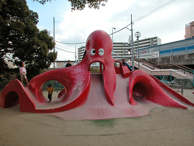 タコ滑り台 その134「服部緑地 子どもの楽園」 タコ滑り台と子ダコ。