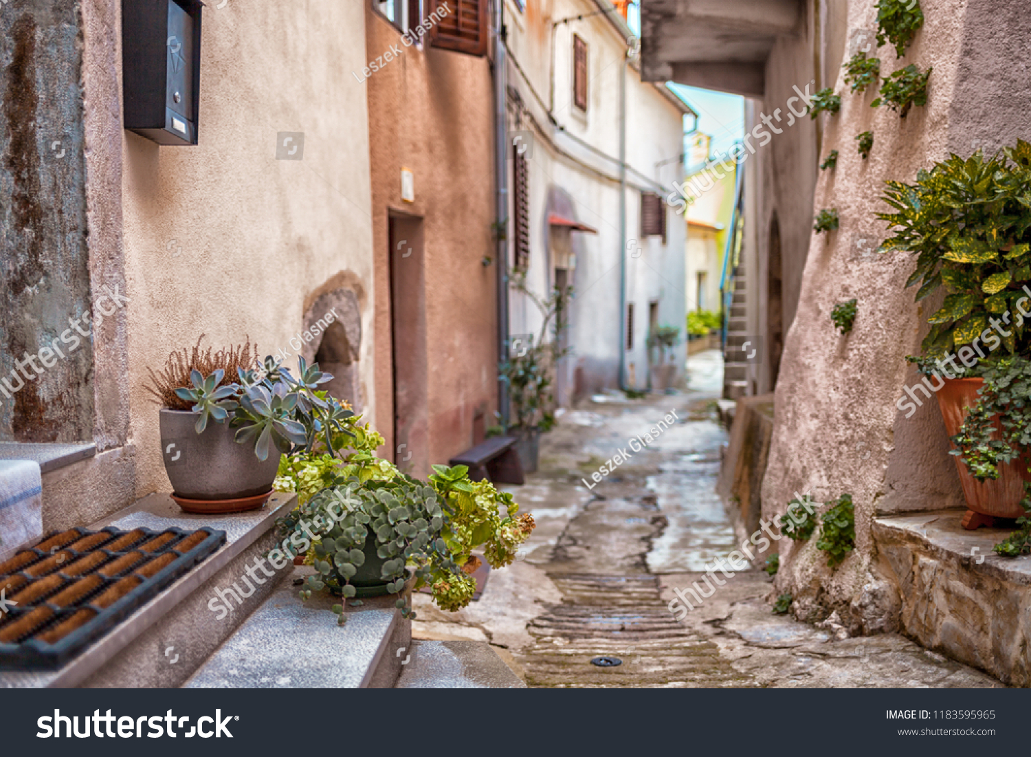 クロアチア、ブルブニク、クルク島のクロアチアの石造りの町並み写真素材1183595965Shutterstock。