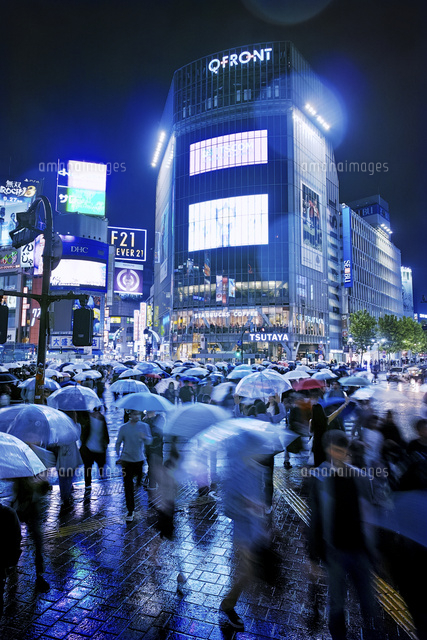 雨の夜に混雑する渋谷スクランブル交差点 10899000404 の写真・イラスト素材アマナイメージズ。