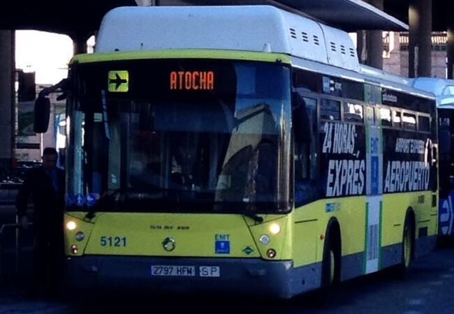 マドリードの市内から空港へ、アトーチャ駅空港行きバス乗り場の場所 - YouTube。