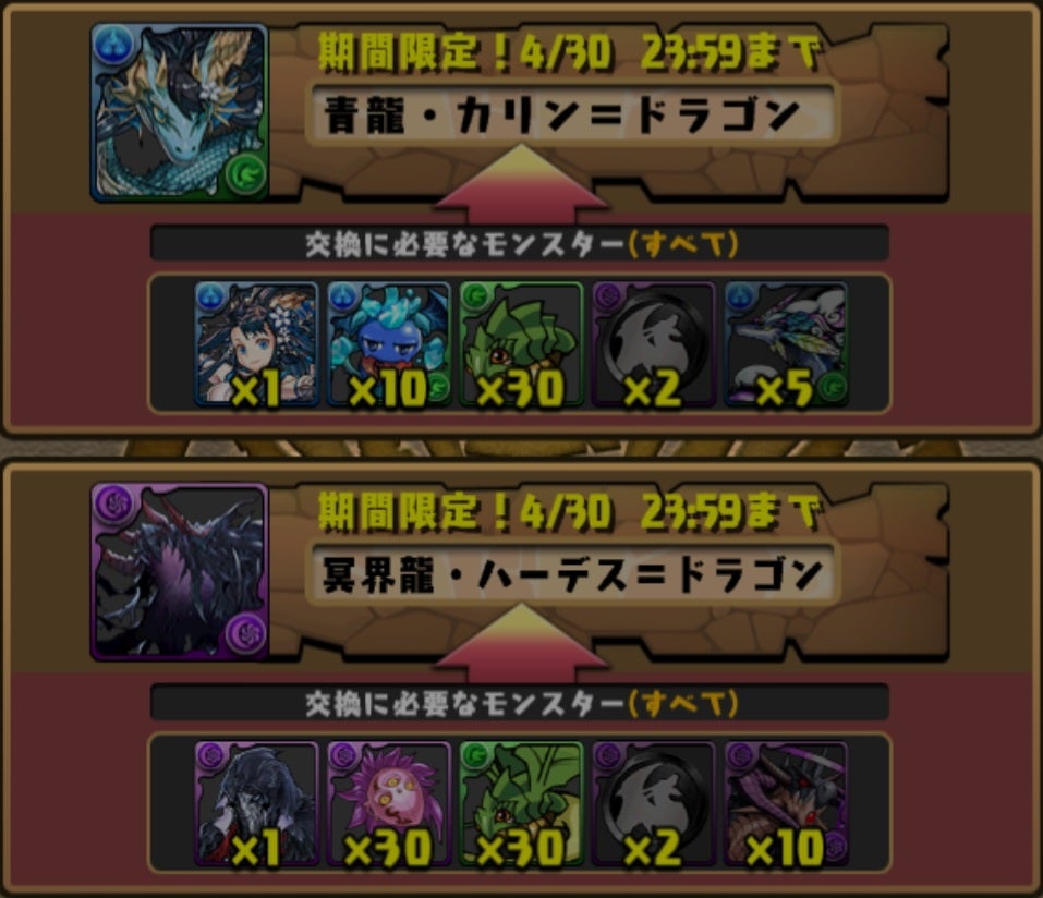 パズドラ カリン=ドラゴンとハーデス=ドラゴンの素材集め方沖人のブログ。