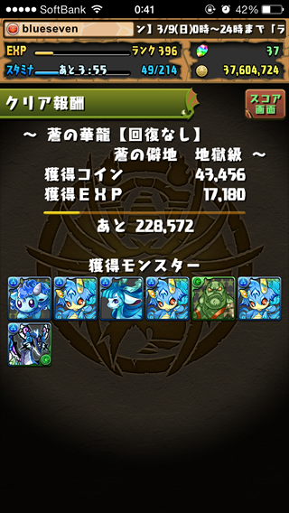 パズドラ 蒼の華龍 地獄級に同じバランスパでリベンジに挑む。