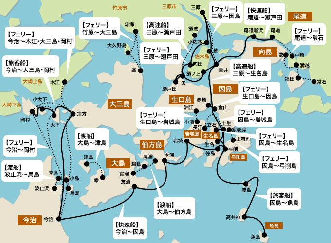 しまなみ海道エリア内の航路マップ:アクセス:おいでや!いまばり。
