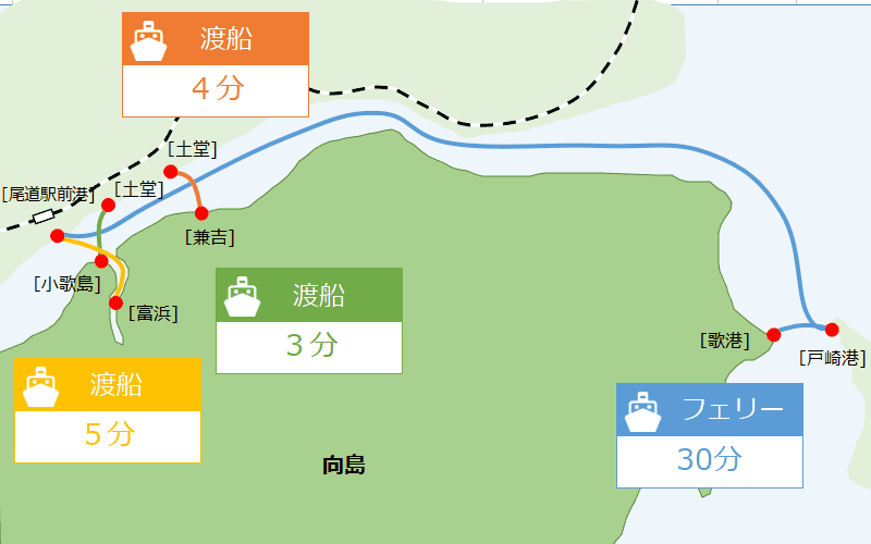 向島 尾道 へフェリー・渡船での行き方!料金や車・自転車についてもご紹介Shimanabi。