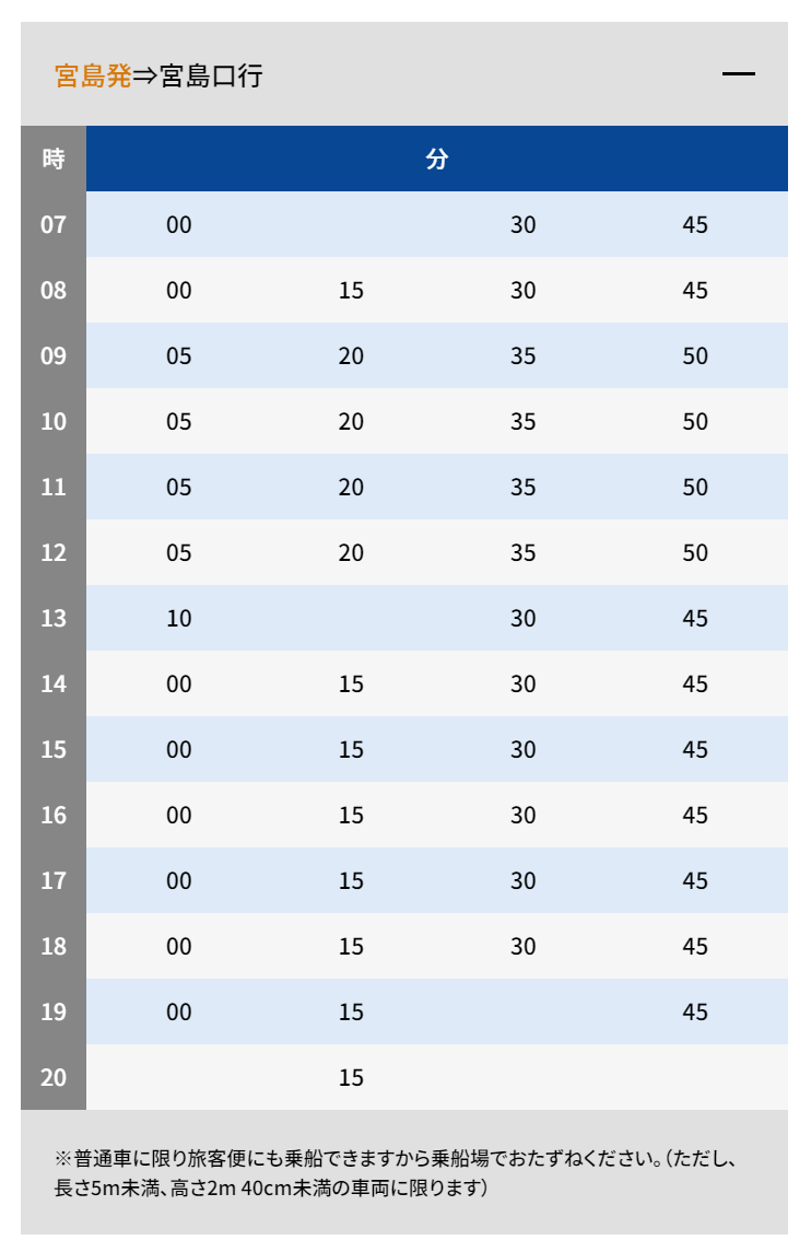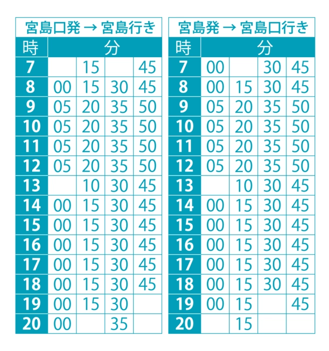 広島-宮島 時刻表・料金表高速船航路瀬戸内海汽船。