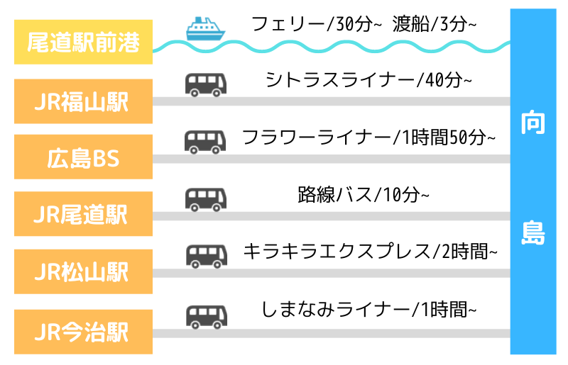 広島 船とバスでの向島・岩子島への行き方離島ガイド。