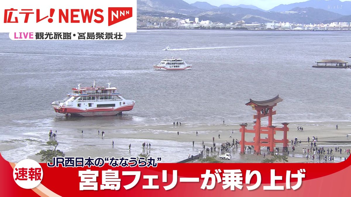 宮島フェリーが鳥居付近で乗り上げ 広島・宮島 2024年3月26日掲載 広テレ!NEWS。