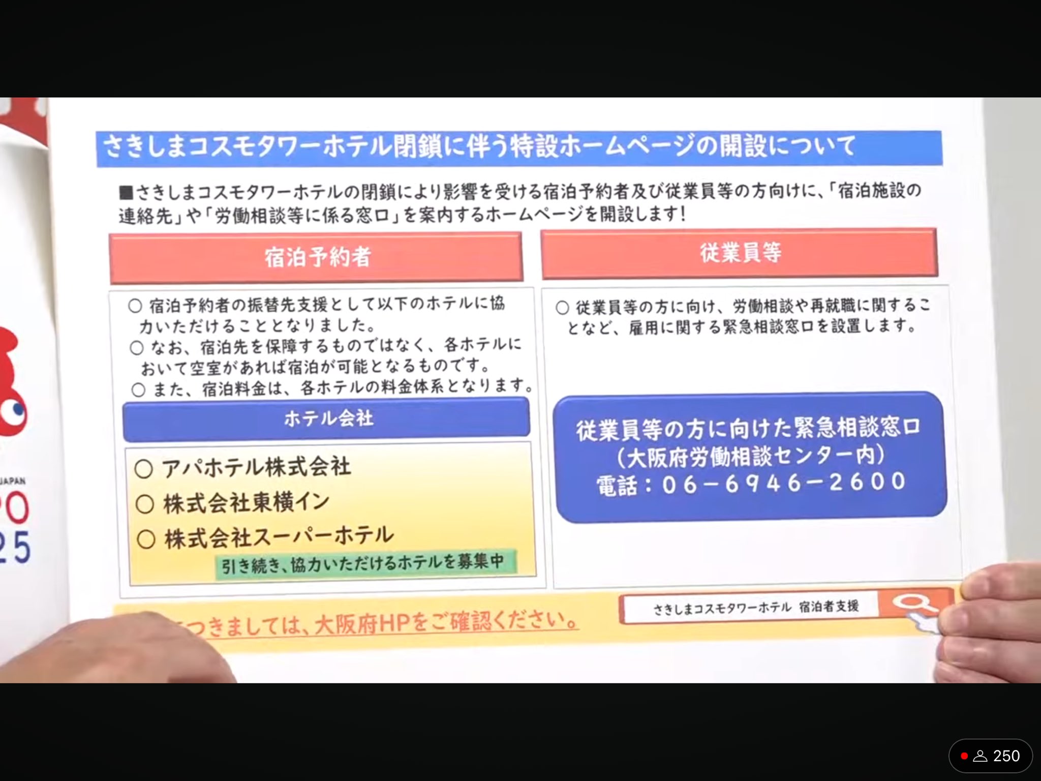 大阪府庁舎で営業「さきしまコスモタワーホテル」破産手続き開始決定 府が26億円超の債権回収できず特集ニュース関西テレビ放送 カンテレ。