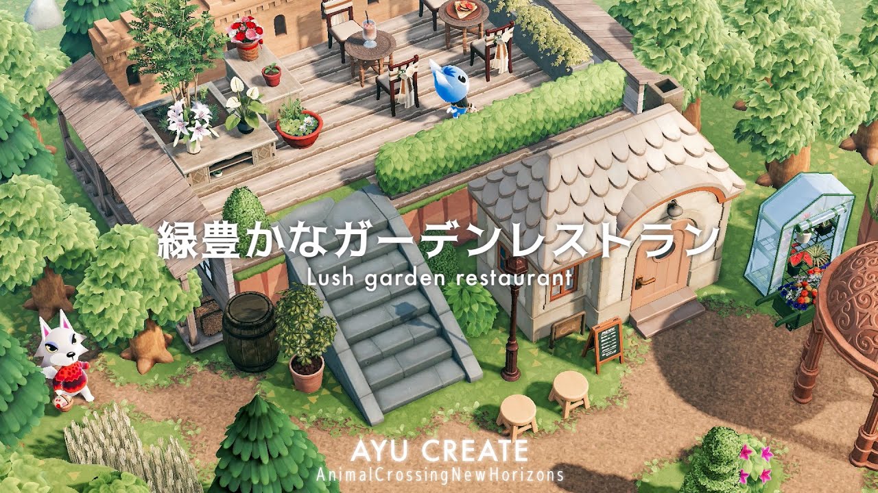 あつ森 緑豊かなテラス付きのガーデンレストランLush garden。
