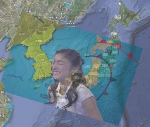 左は、韓国で見る地図らしい? 韓国は北海道より少し広いくらいだけど この地図では、日本がちっちゃい! 対馬が韓国領土になってる。 日本。