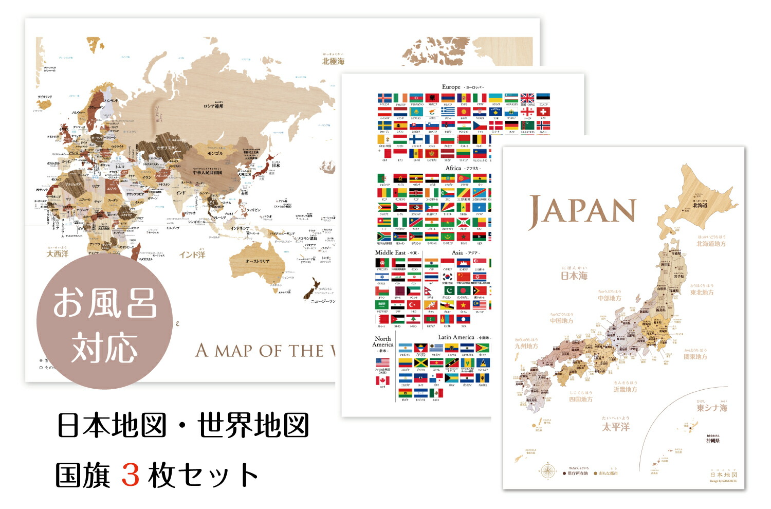 楽天市場 お風呂対応 3点セット 寄木風の日本地図。