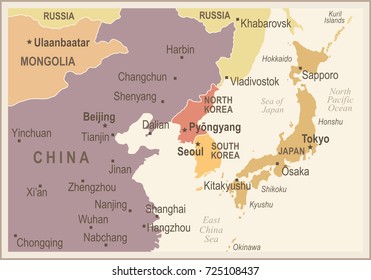 北朝鮮韓国日本中国ロシアモンゴルの地図 – 詳細なベクターイラスト」のベクター画像素材 ロイヤリティフリー725108365Shutterstock。