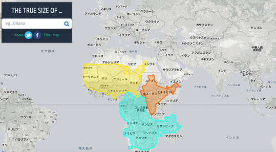 地図の中で国を移動させて大きさを比較できるサイト「THE TRUE SIZE OF」 –。