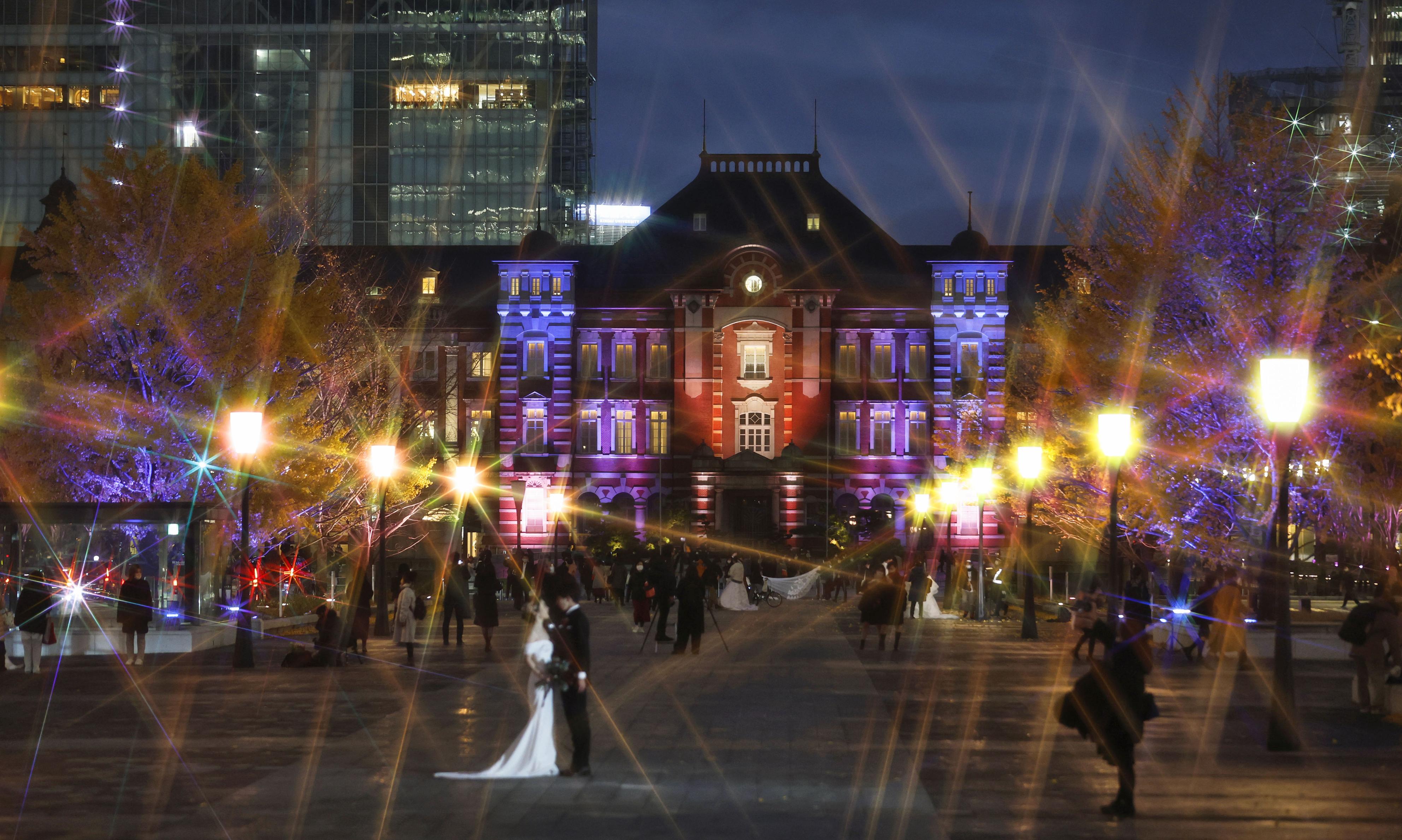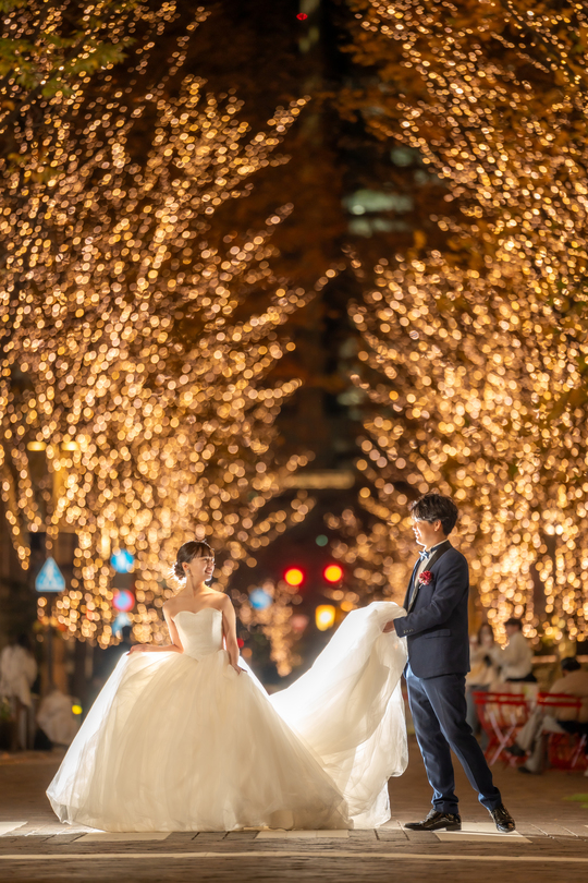 東京駅 丸の内イルミネーション 2025 結婚式前撮り。
