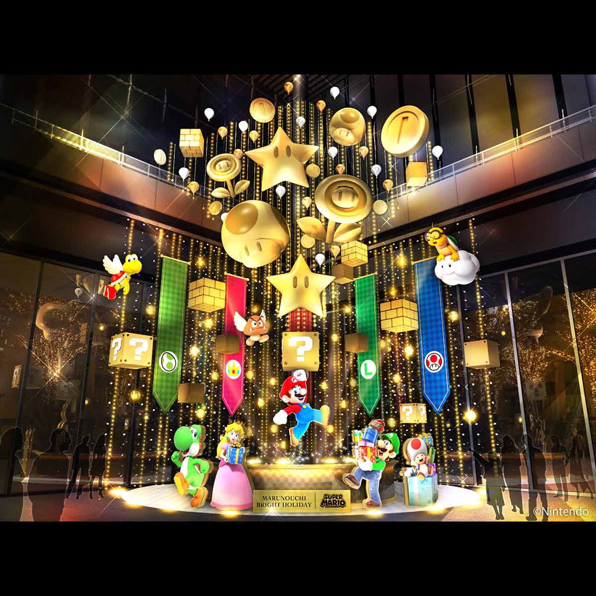 丸の内エリアでスーパーマリオとコラボした「MARUNOUCHI BRIGHT HOLIDAY 2024」。高さ13mの巨大オブジェも -。