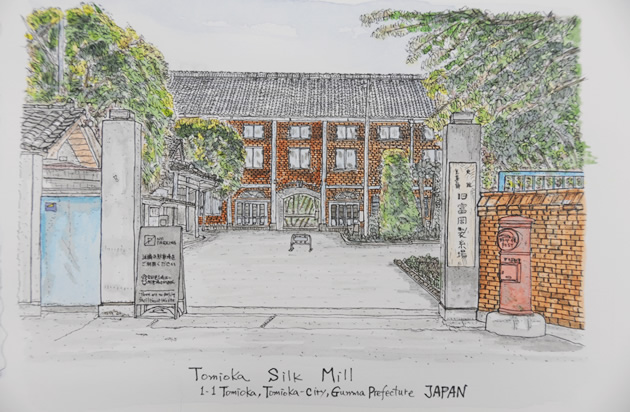 世界遺産富岡製糸場 ペン水彩画ペン水彩画 KIMIO。