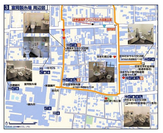 バリアフリーで富岡製糸場 散策 富岡市が周辺マップ作製。