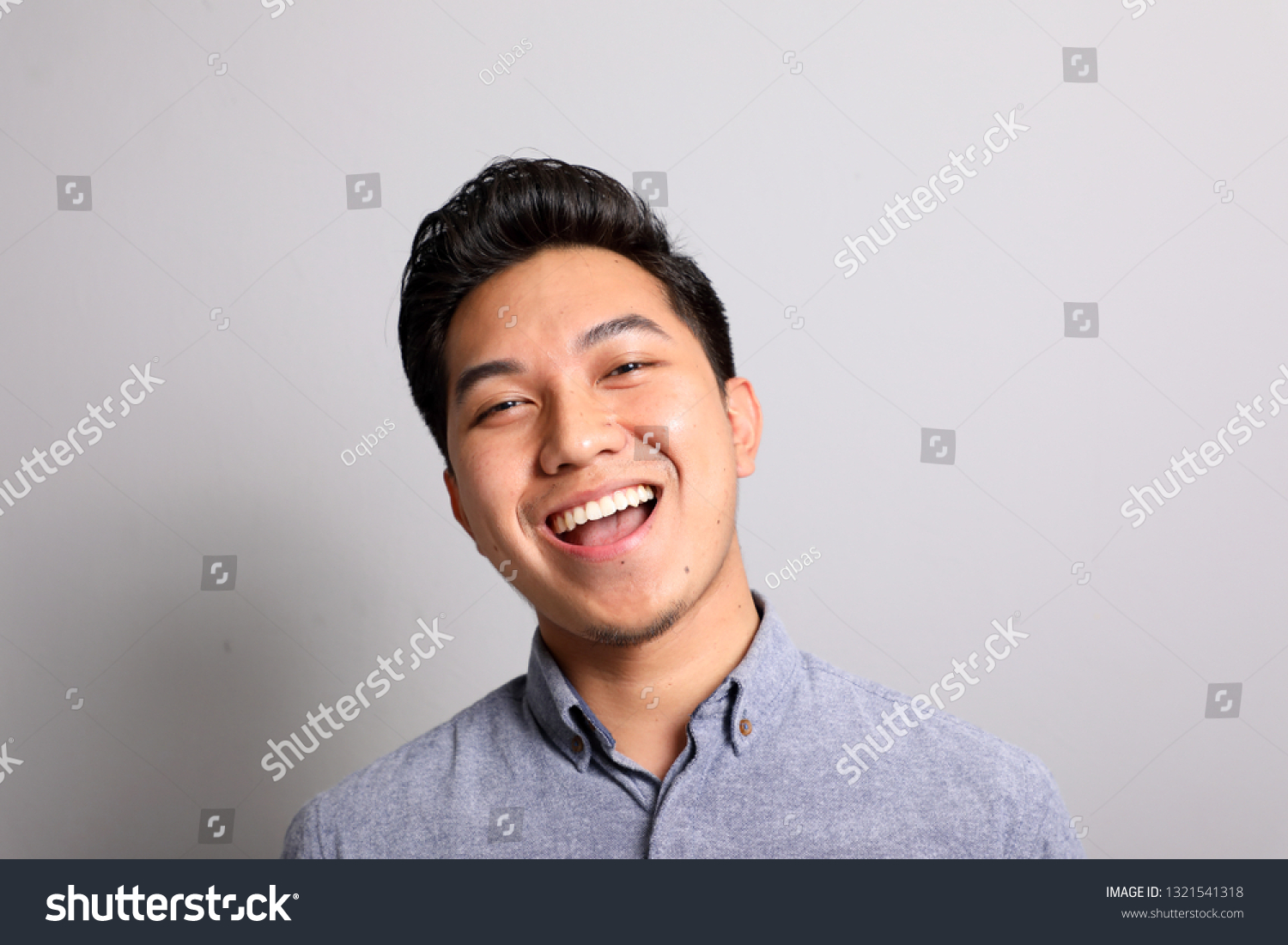 東南アジアの男性の顔の表情写真素材1321541318Shutterstock。