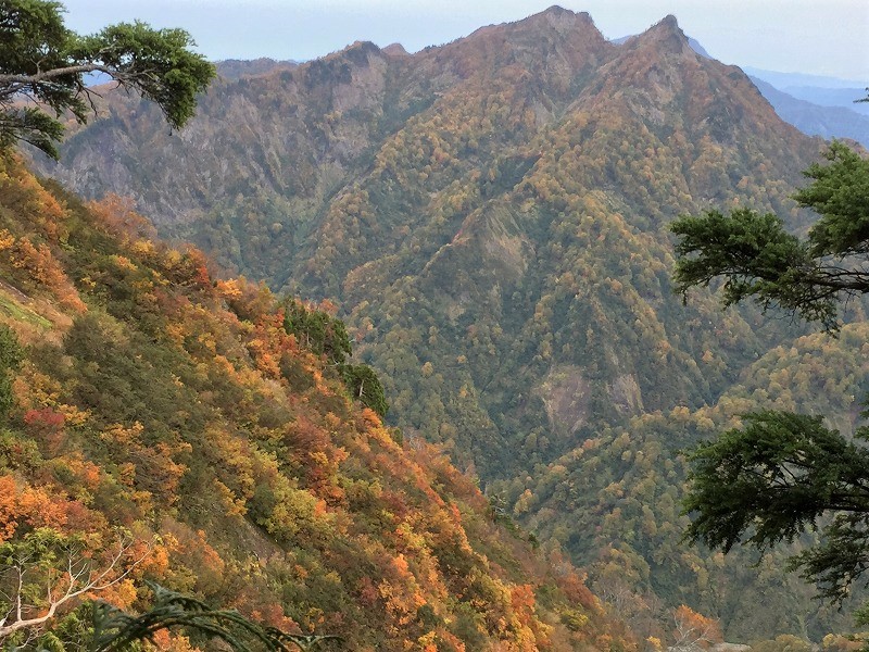 秋色の海谷三山と荒れた海谷渓谷 縦走編Mountain range of。