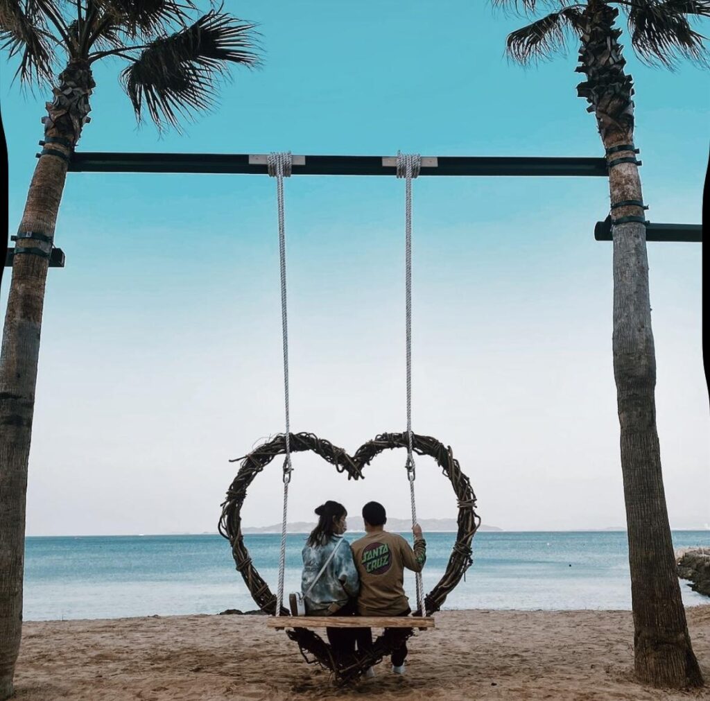 福岡 可愛すぎる!ハートのヤシの木ブランコTrip.com 福岡。