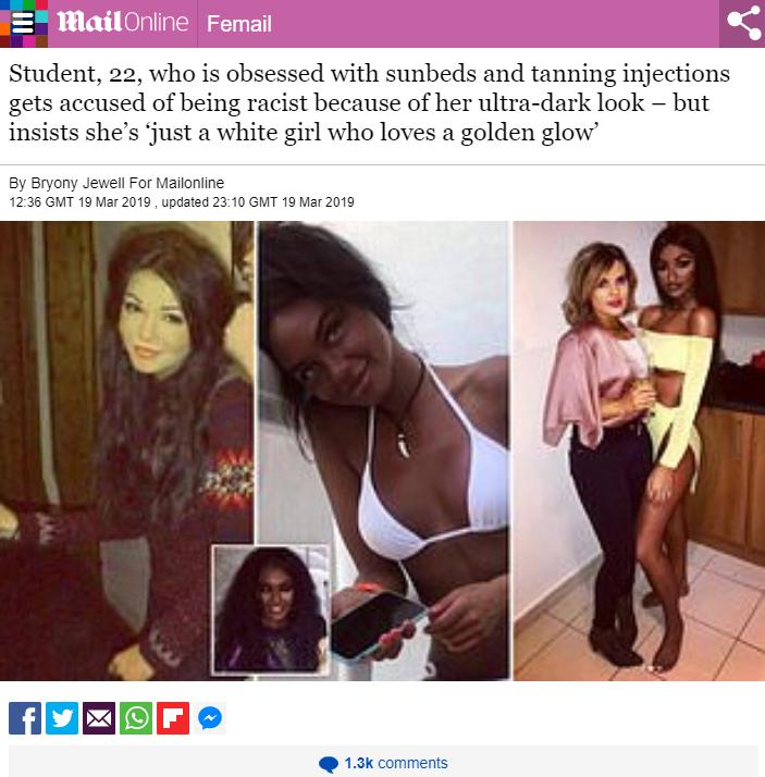 海外発!Breaking News 人工日焼けに取りつかれた白人女性 黒人と間違われるも。