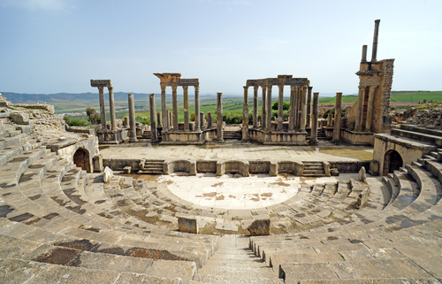世界遺産ドゥッガ遺跡のローマ劇場。チュニジア旅行チュニジアドゥッガ。