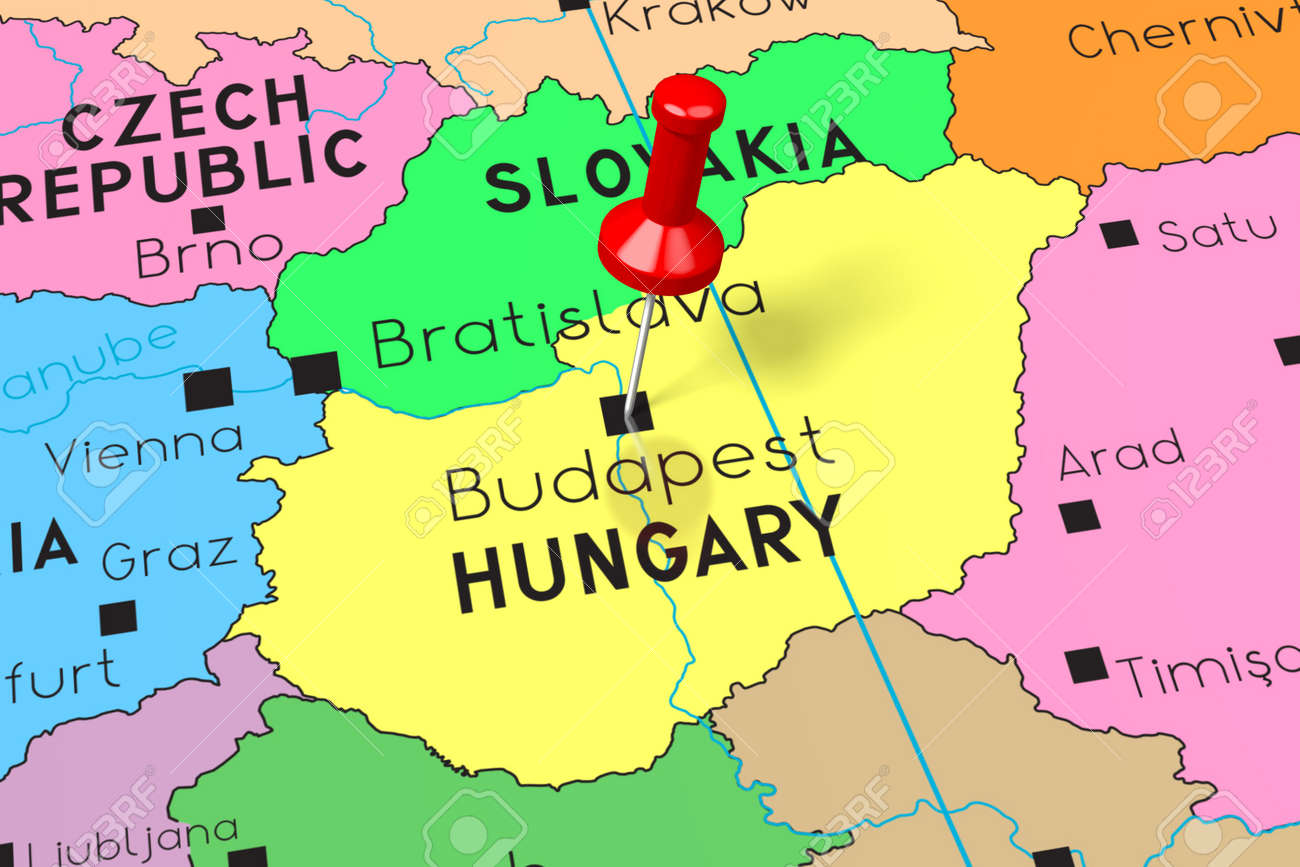ハンガリー首都ブダペスト、国境、重要な都市、河川や湖沼での政治地図。英語ラベルとスケーリングします。イラスト。のイラスト素材・ベクター Image44690020。