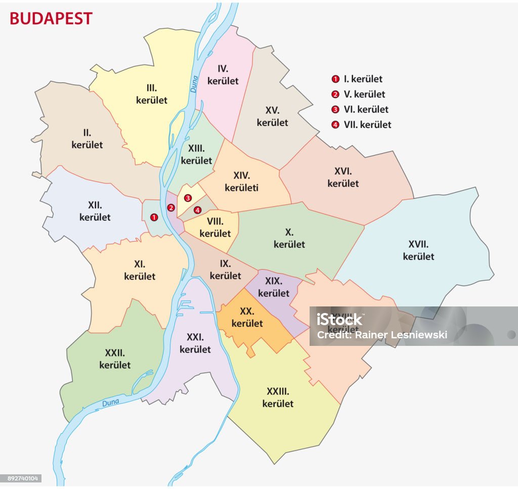 ハンガリーのブダペストの地図の首都の地区」のベクター画像素材 ロイヤリティフリー1909417990Shutterstock。