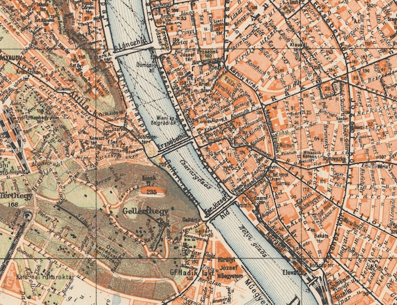 古いブダペスト ハンガリー地図1919ヴィンテージ ハンガリー首都地図帳ポスター -。