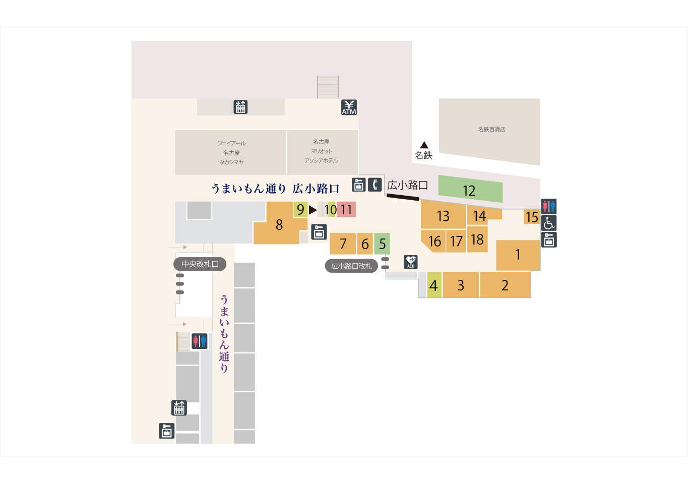 1FコンコースフロアガイドJR名古屋駅 名古屋うまいもん通り・ファッションワン。