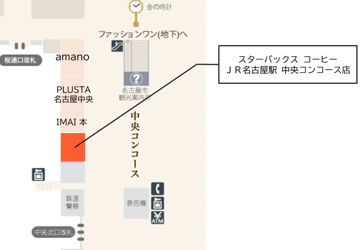スタバ JR名古屋駅 中央コンコース店STARBUCKS。