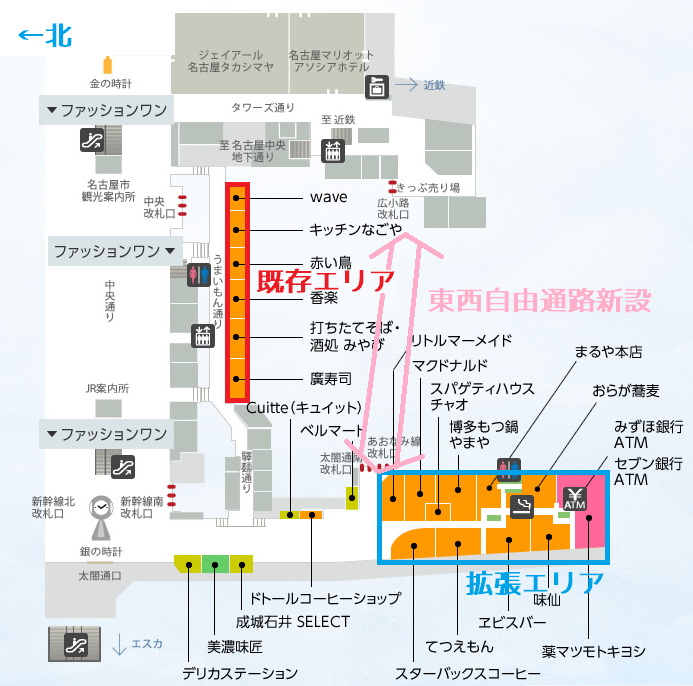 名古屋駅に新しい東西通路 幅9mで店舗整備へ飛翔~リニア時代の新しい名古屋へ。