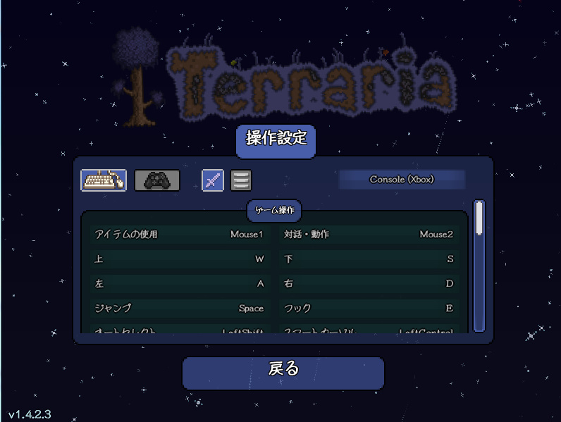 PC版テラリアのコントローラー設定についてモリオのブログ。