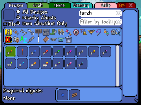Terraria 便利MOD:Recipe Browserの使い方タカイチブログ。