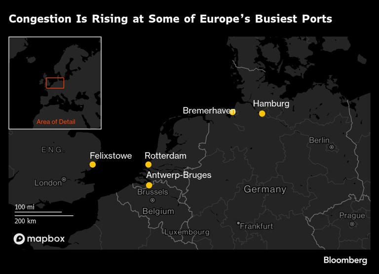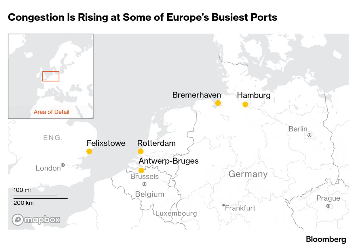 欧州の港湾混雑が深刻化、米国やアジアに波及か-運賃上昇リスク - Bloomberg。
