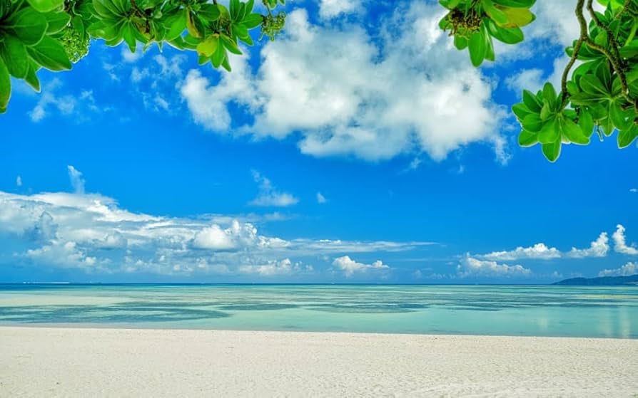 Amazon.co.jp: 絵画風 壁紙ポスターはがせるシール式沖縄の海景色 緑と空と海と白浜のハーモニー。