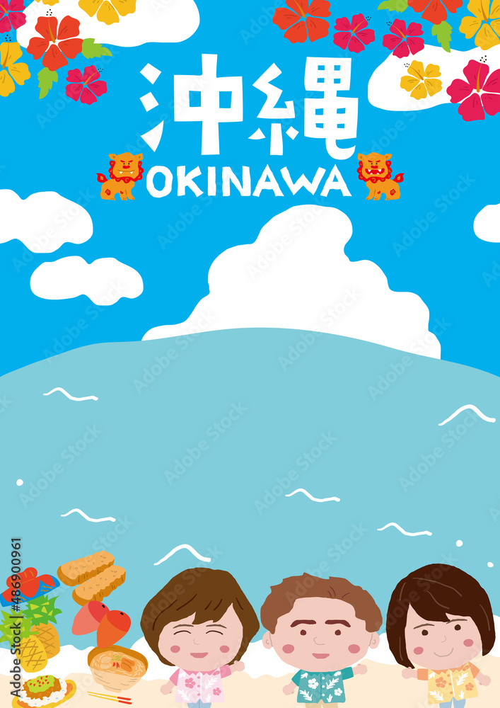 沖縄観光イメージのイラストポスター 縦 の Stock。