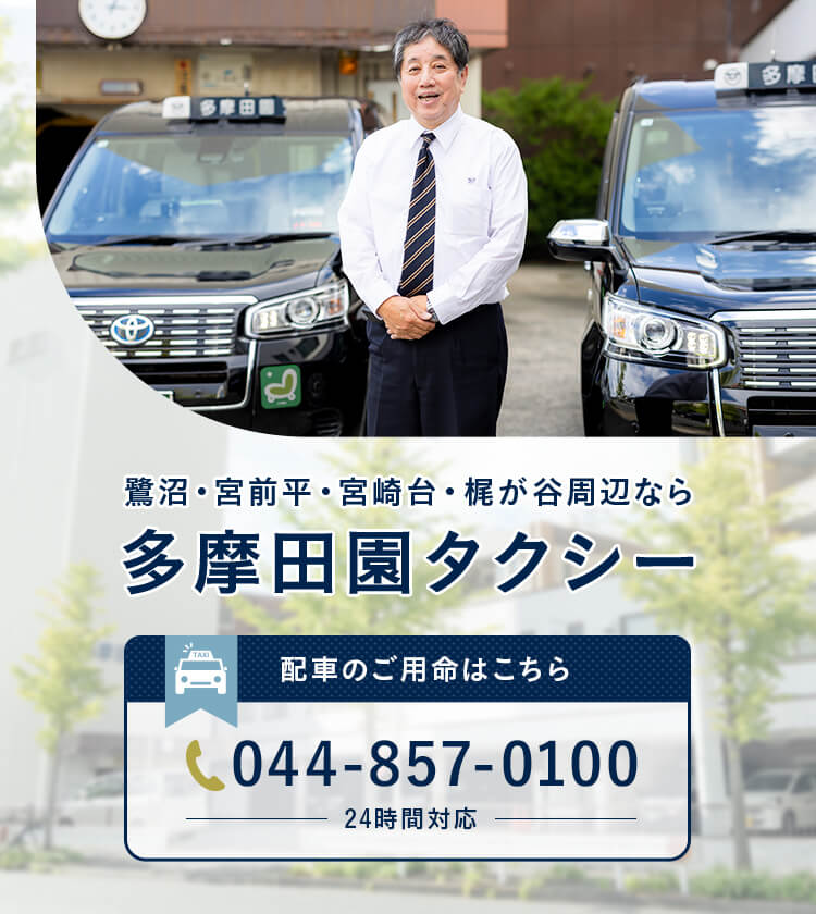 多摩田園タクシー株式会社鷺沼・宮前平・宮崎台・梶が谷周辺ならお任せください。